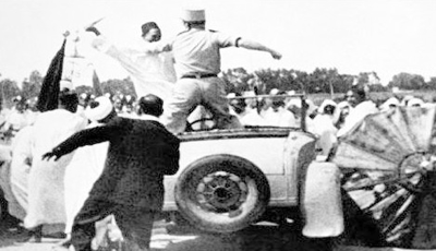 لقد كانت سلطات الاستعمار الفرنسي تتوهم أنه بتفكيك العروة الوثقى بين الملك وشعبه، ستخمد جذوة الروح الوطنية والمقاومة، لكن التحام المغاربة الوثيق وترابطهم المتين قمة وقاعدة، كان القوة الضاربة والصخرة الصلبة التي تحطمت عليها مؤامرة المستعمر، والتي أفشلت مخططاته التي كانت تهدف إلى طمس هوية المغرب والنيل من سيادته وكرامته. لم يكن لمؤامرة ومخططات الاحتلال إلا أن تقوي وتعزز صفوف الفدائيين، وتؤجج روح الثورة المباركة في صفوف الشعب المغربي الأبي، وأصبح يوم 20 غشت من كل سنة رمزا للآصرة المتينة التي تربط العرش بالشعب في مسيرات وملاحم المغرب المتجددة، باعتباره محطة بارزة ومنعطفا حاسما في مسيرة التحرير والوحدة. وهكذا، بادر هذا الوطني الغيور والمقاوم الجسور بما أوتي من إقدام وشجاعة وجرأة، وما تزود به من روح نضالية مع رفاق دربه من الوطنيين ومن التجار والحرفيين بمدينة الرباط، إلى القيام بعمل بطولي سيظل خالدا في سجل تاريخ الكفاح الوطني الطافح بالأمجاد والبطولات، حيث تصدى يوم الجمعة 11 شتنبر 1953 لموكب صنيعة الاستعمار “ابن عرفة” الذي كان متوجها صوب مسجد أهل فاس لأداء صلاة الجمعة، ليبرهن بهذه الخطوة المقدامة عن قمة الشعور الوطني ومدى تمسك المغاربة بملكهم الشرعي، وموقفهم الرافض بنفي رمز سيادة الأمة جلالة المغفور له محمد الخامس، طيب الله ثراه، وأسرته الملكية الشريفة.