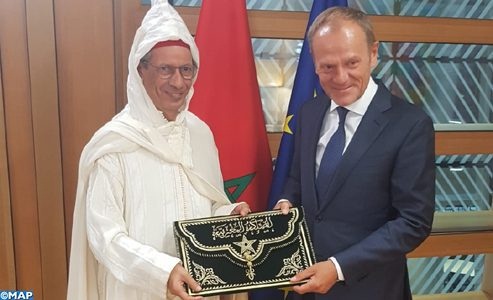 كما أعرب سفير جلالة الملك لدى الاتحاد الأوربي للسيد تاسك عن عزمه العمل وفقا للتوجيهات الملكية السامية من أجل تطوير علاقات الشراكة رفيعة المستوى بين المغرب والاتحاد الأوربي .