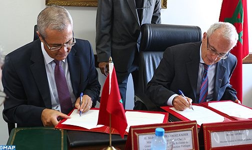 تم اليوم الاثنين بالرباط توقيع اتفاقية تعاون بين وزارة إصلاح الإدارة والوظيفة العمومية والمدرسة الوطنية للإدارة العمومية بإقليم الكيبك (كندا)، لتعزيز قدرات الموارد البشرية بالإدارة العمومية.