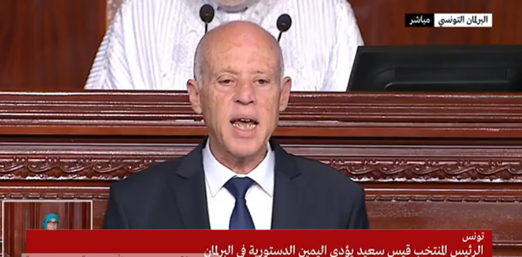 وخلال هذا الحفل أدى الرئيس التونسي المنتخب، قيس سعيد، (61 سنة)، اليمين الدستورية أمام أعضاء مجلس نواب الشعب، طبقا للفصل 76 من الدستور التونسي، وبحضور عدد من كبار الشخصيات والبعثات الدبلوماسية، ليصبح رئيسا جديدا للبلاد، لفترة رئاسية مدتها خمس سنوات.