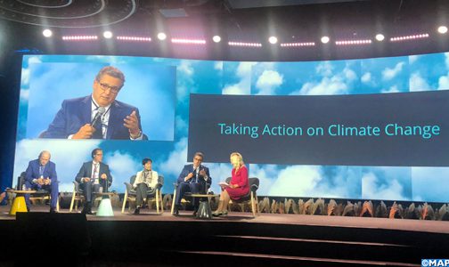 وأبرز أن عمل المغرب لا يقتصر على الصعيد الوطني، وإنما يمتد إلى الصعيد الإقليمي، مشيرا في هذا الصدد إلى إطلاق مبادرة الحزام الأزرق خلال مؤتمر (كوب 22)، التي تروم إرساء آليات للتعاون وتعبئة الدعم التقني والمالي من أجل الاستجابة بشكل متزامن لتحديات التغيير المناخي والحفاظ على المحيطات وتطوير مستدام للصيد البحري وتربية الأحياء المائية، وكلها عناصر أساسية للأمن الغذائي في إفريقيا والعالم.