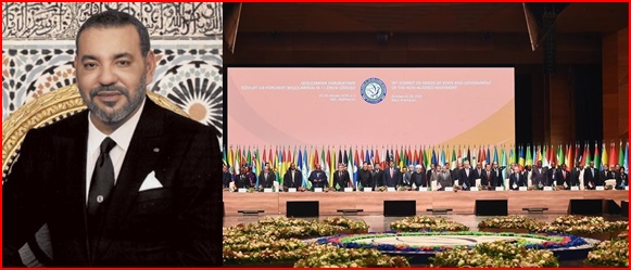 أشاد رؤساء دول وحكومات حركة عدم الانحياز بدور صاحب الجلالة الملك محمد السادس، بصفته رئيسا للجنة القدس، في الدفاع عن الحقوق المشروعة للشعب الفلسطيني من أجل إقامة دولة ذات سيادة، مستقلة وقابلة للحياة، وعاصمتها القدس الشرقية، على أساس القرارات الدولية ذات الصلة ومبادرة السلام العربية الرامية إلى إقامة دولتين، معترف بهما دوليا.