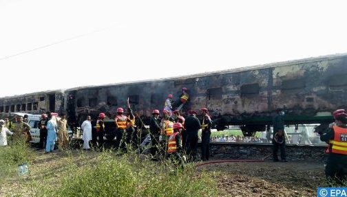 لقي ما لا يقل عن 65 شخصا مصرعهم وأصيب عشرات آخرون، اليوم الخميس، إثر اندلاع حريق في قطار ركاب بمنطقة رحيم يار خان بمقاطعة البنغاب شرقي باكستان، وفق ما ذكر مسؤولون محليون. وأكدت وزيرة الصحة المحلية، ياسمين رشيد، أنه يجري نقل أكثر من أربعين جريحا الى المستشفيات في المنطقة. من جهته، أوضح مسؤول في السكك الحديدية، في تصريح صحفي، أن الحريق اندلع بسبب انفجار اسطوانة غاز داخل القطار بينما كان أحد الركاب يحاول إعداد فطوره، مضيفا أن الحريق اجتاح ثلاث عربات من القطار.