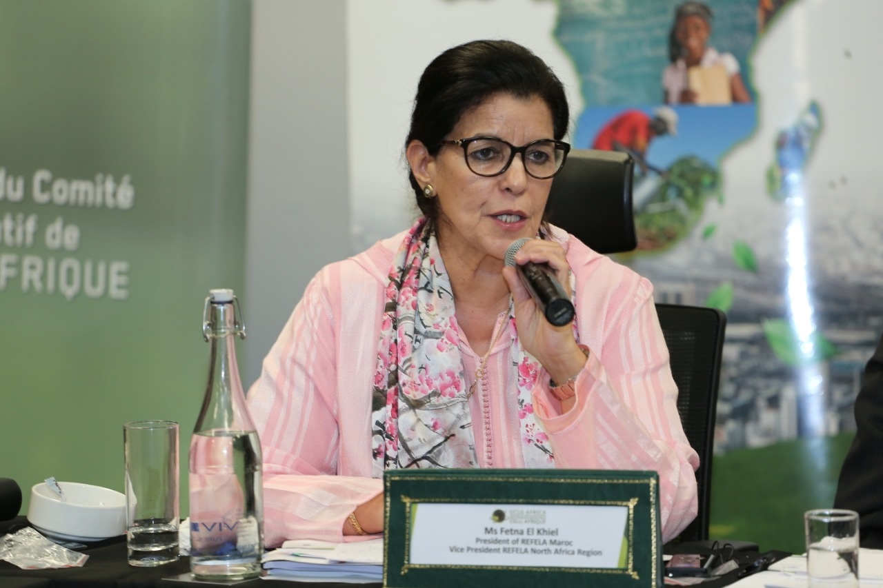 فاطنة الكحيل كاتبة الدولة في الاسكان سابقا ورئيسة جماعة عرباوة وشبكة النساء المنتخبات محليا بالمغرب في الجمع العام المنعقد بمدينة بDurbain جنوب افريقيا