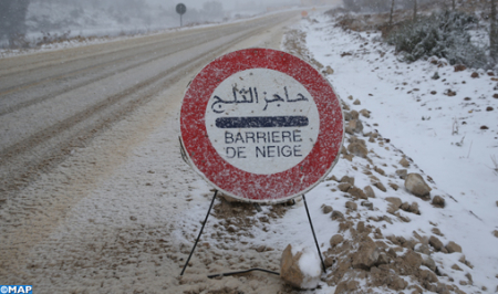 وكإجراء احترازي لضمان سلامة مستعملي الطريق، يضيف البلاغ، كانت مصالح وزارة التجهيز والنقل واللوجستيك والماء قد قامت بمنع مرور العربات الثقيلة لتفادي انزلاقها بفعل الجليد خلال فترات بكل من الطريق الوطنية رقم 13 الرابطة بين أزرو وميدلت عبر تيمحضيت وزايدة، والطريق الجهوية رقم 503 الرابطة بين خنيفرة وزايدة، والطريق الجهوية رقم 707 الرابطة بين إفران وبولمان.