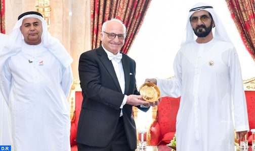 وتسلم العالم المغربي الميدالية من الشيخ محمد بن راشد آل مكتوم نائب رئيس الامارات رئيس مجلس الوزراء حاكم دبي خلال حفل حضرته شخصيات إماراتية ونخبة من العلماء والباحثين.