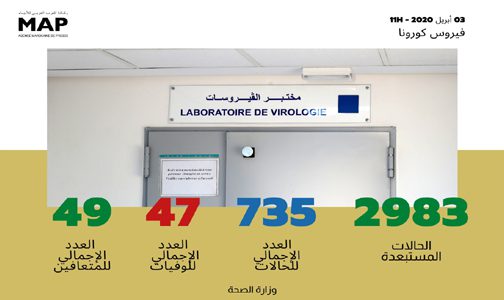 وبحسب الحصيلة الجديدة التي نشرتها الوزارة على بوابتها الرسمية الخاصة بفيروس كورونا المستجد بالمغرب “www.covidmaroc.ma”، فإنه لم يتم تسجيل أي تغيير في العدد الإجمالي للحالات المستبعدة بعد تحليل مخبري سلبي التي استقرت في 2983 حالة، وحالات الإصابة المؤكدة بالفيروس (735 حالة)، وكذا الوفيات (47 حالة).
