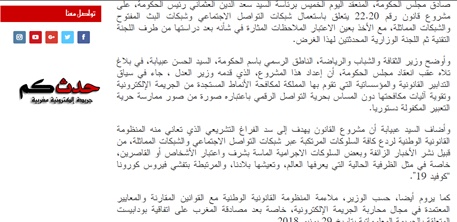 ومرد استحضار التوجيهات الملكي السامية في هذا الوضوع، هو ما حصل اليوم بين الحكومة واحزاب الاغلبية، حول “مشروع القانون رقم 20 ـ 22 ” والذي صادق عليه المجلس الحكومة برئاسة السيد سعد الدين العثماني يوم 19 مارس الماضي، وتلى اشغاله الناطق الرسمي باسم الحكومة أنذاك الحسن عبيابة، عبر القنوات الرسمية، و “الدنيا هانيا !”.