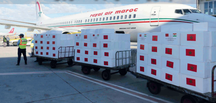 وثمن المكتب هذه المبادرة الإنسانية التي شملت أدوية ومواد تعقيم وملابس طبية وكمامات للوقاية، معربا، في هذا الصدد، عن شكره لصاحب الجلالة الملك محمد السادس والشعب المغربي.