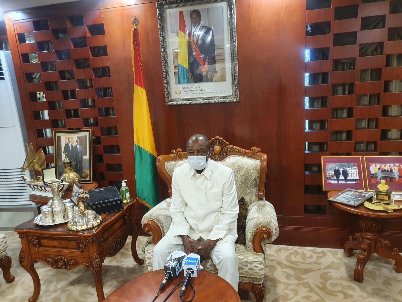 وأكد، في تصريح للصحافة، أن صاحب الجلالة الملك محمد السادس ” تفضل مرة أخرى بتقديم هبة لشعب غينيا عبارة عن مساعدات هامة تتمثل في منتجات ومعدات موجهة لدعم الجهود التي تبذلها بلادنا لمكافحة (كوفيد-19) “.