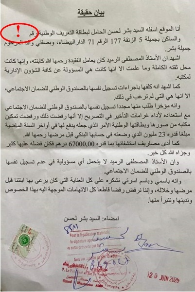 وبهذا يكون الملف امام فرضيتين: اما انه انتهى بنهاية الفقيدة، وطُبق عليه حكم “عفى الله عما سلف !” ، و”ليخرص المهرجون!” ام كما يقال “جا ابُوسُو او هو يعميه” من خلال هذا الـ”بيان حقيقة” المؤرخ اليوم السبت 20 يونيو الحالي، والذي هو يوم عطلة ، وما يحتوي عليه من توضيحات!، لا يفهمها الا من سيطلع على البيان الذي توصل به الموقع، اذا كان بدوره صحيحا!، وفي ما يلي نسخة منه: