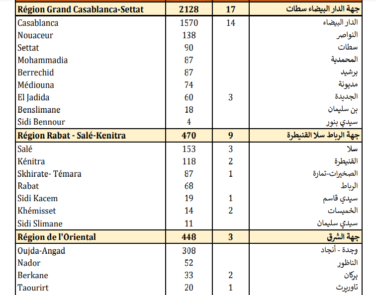 وتتوزع الحالات المسجلة خلال الـ24 ساعة الأخيرة عبر جهات المملكة، بين كل من الدار البيضاء-سطات (1090)، والرباط-سلا-القنيطرة (726)، وجهة الشرق (270)، وسوس-ماسة (227)، وطنجة-تطوان-الحسيمة (216)، ومراكش-آسفي (148)، وبني ملال-خنيفرة (106).