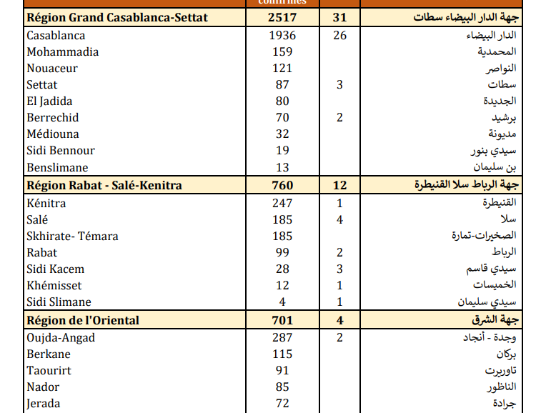 وبخصوص حالات الوفاة، أشارت نشرة الوزارة إلى أنه تم تسجيل 31 حالة بجهة الدار البيضاء-سطات، و12 حالة بجهة الرباط-سلا-القنيطرة، و10 حالات بجهة طنجة-تطوان-الحسيمة، و6 حالات بجهة مراكش-آسفي، و5 حالات بجهة سوس-ماسة، و4 حالات بكل من جهات الشرق وبني ملال-خنيفرة وفاس-مكناس، وحالة وفاة واحدة بجهة درعة-تافيلالت.