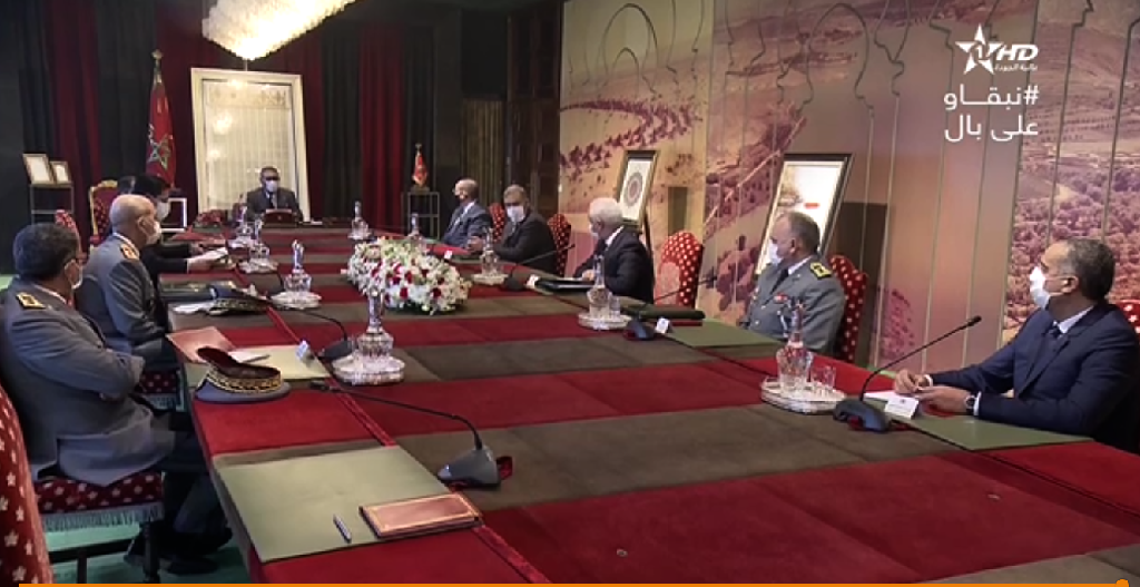 حضر جلسة العمل هاته رئيس الحكومة السيد سعد الدين العثماني، ومستشار صاحب الجلالة السيد فؤاد عالي الهمة ووزير الداخلية السيد عبد الوافي لفتيت، ووزير الشؤون الخارجية والتعاون الإفريقي والمغاربة المقيمين بالخارج السيد ناصر بوريطة، ووزير الصحة السيد خالد آيت الطالب، والجنرال دو كوردارمي عبد الفتاح الوراق المفتش العام للقوات المسلحة الملكية، والجنرال دو كور دارمي محمد حرمو قائد الدرك الملكي، ومفتش مصلحة الصحة العسكرية للقوات المسلحة الملكية الجنرال دوبريكاد محمد عبار والمدير العام للأمن الوطني المدير العام لمراقبة التراب الوطني السيد عبد اللطيف الحموشي.