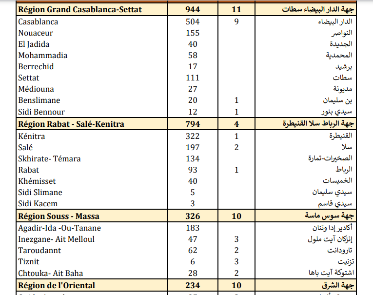 وتتوزع حالات الإصابة المسجلة خلال الـ24 ساعة الأخيرة عبر جهات المملكة، بين كل من الدار البيضاء-سطات (944 حالة)، والرباط-سلا-القنيطرة (794)، وسوس ماسة (326)، والشرق (234) وطنجة-تطوان-الحسيمة (83)، ومراكش-أسفي (64)، وجهة فاس-مكناس (61)، وجهة الداخلة-وادي الذهب (15)، و8 حالات بجهة بني ملال- خنيفرة، و4 حالات بجهة درعة تافيلالت، فيما لم تسجل أي إصابة جديدة بجهة كلميم واد نون.