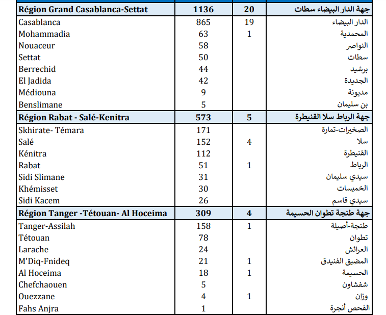 وتتوزع حالات الإصابة المسجلة خلال الـ24 ساعة الأخيرة عبر جهات المملكة، بين كل من جهات الدار البيضاء-سطات بـ1136 حالة، والرباط-سلا-القنيطرة (573)، وطنجة-تطوان-الحسيمة (309)، ومراكش-آسفي (191)، وسوس ماسة (119)، وبني ملال- خنيفرة (90)، والعيون-الساقية الحمراء (81)، وجهة الشرق (79)، وكلميم-واد النون (73)، ودرعة-تافيلالت (67)، وفاس-مكناس (67)، كما تم تسجيل 8 حالات بحهة الداخلة-وادي الذهب.