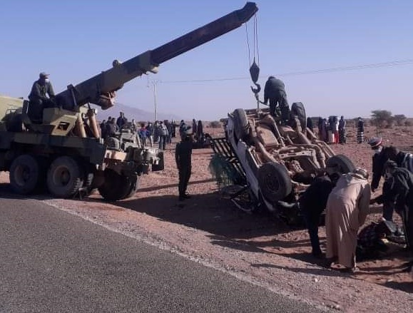 وحسب السلطات المحلية فإن الحادث نجم عن انقلاب سيارة من نوع “بيكوب”، التي كانت تقل أزيد من 20 شخصا يعملون بإحدى الضيعات الفلاحية، على مستوى الطريق الرابط بين الجماعة الترابية أقا والجماعة الترابية تزونين.