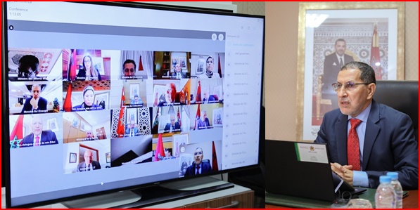 وقال في افتتاح اجتماع مجلس الحكومة الذي ترأسه صباح يوم الخميس 14 يناير 2021 من مدينة الداخلة بتقنية التواصل عن بعد، ” إننا أمام مكاسب حقيقية ذات طابع استراتيجي بفضل الجهود التي يقودها جلالة الملك حفظه الله لصيانة الوحدة الترابية والوطنية، والحكومة مجندة باستمرار لإنجاح الجهود المبذولة”، مضيفا أن افتتاح 19 قنصلية لدول شقيقة وصديقة بمدينتي العيون والداخلة، سيغير وجه النزاع المفتعل في الأقاليم الجنوبية، ومنوها في ذات الوقت بجهود الدبلوماسية المغربية وعلى رأسها وزارة الشؤون الخارجية والتعاون الإفريقي والمغاربة المقيمين بالخارج ومسؤوليها وأطرها.