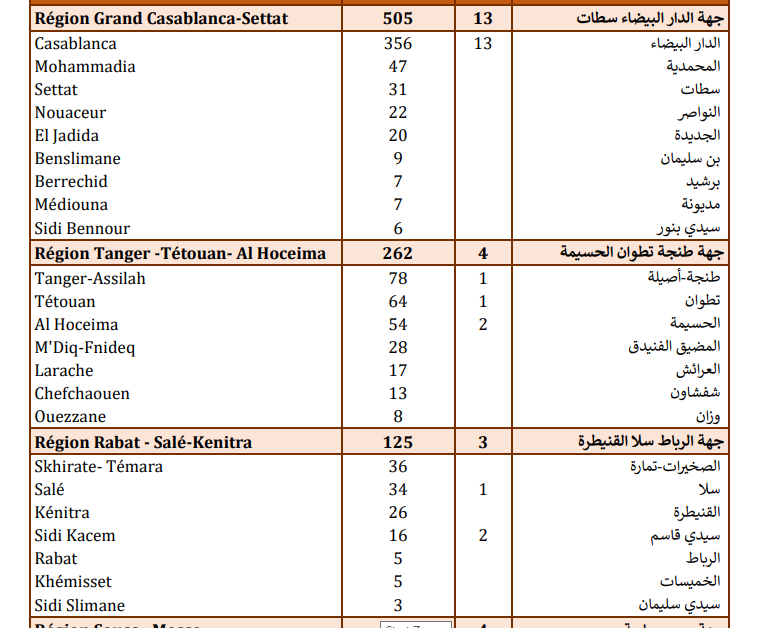 أما الوفيات، فتتوزع على جهات الدار البيضاء-سطات (13)، ومراكش-آسفي (5)، وطنجة-تطوان-الحسيمة (4)، وسوس ماسة (4)، وجهة الشرق (4)، والرباط-سلا-القنيطرة (3)، وفاس-مكناس (3)، وكلميم واد نون (2)، ودرعة تافيلالت (2)، والداخلة-وادي الذهب (2)، وبني ملال خنيفرة (2).