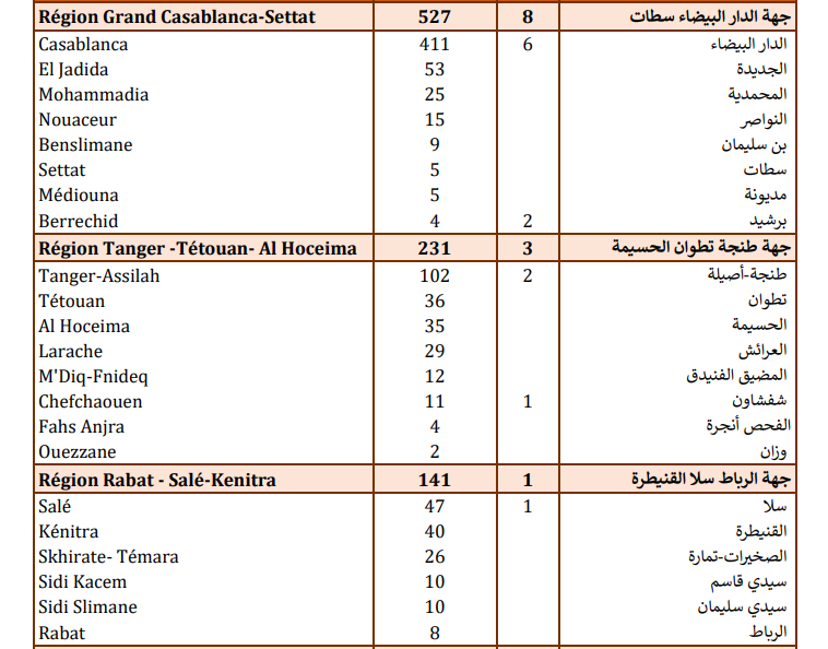 أما الوفيات، فتتوزع على جهات الدار البيضاء-سطات (8)، ومكناس – فاس (5)، وجهة الشرق (4)، وطنجة – تطوان – الحسيمة (3)، ومراكش-آسفي (3)، وبني ملال – خنيفرة (3)، وكلميم واد نون (3)، ودرعة تافيلالت (2)، والرباط-سلا-القنيطرة (1)، وسوس ماسة (1)، والعيون الساقية الحمراء (1).