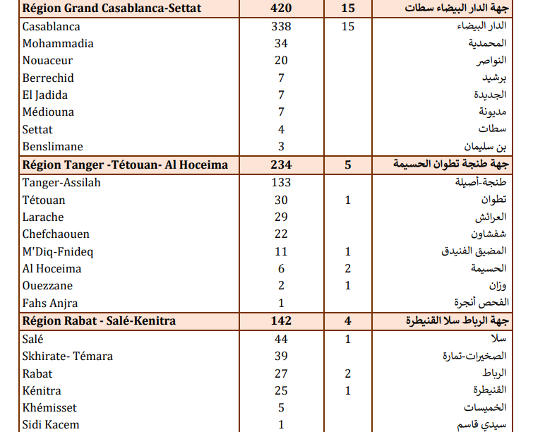 وتتوزع حالات الإصابة المسجلة خلال الـ24 ساعة الأخيرة عبر جهات المملكة بين كل من جهات الدار البيضاء-سطات (420)، وطنجة-تطوان-الحسيمة (234)، والرباط-سلا-القنيطرة (142)، والشرق (105)، وسوس-ماسة (78)، ومراكش- آسفي (54)، وفاس-مكناس (51)، وبني ملال-خنيفرة (25)، ودرعة-تافيلالت (16)، والعيون-الساقية الحمراء (16)، وكلميم-واد نون (8)، والداخلة-وادي الذهب (3).