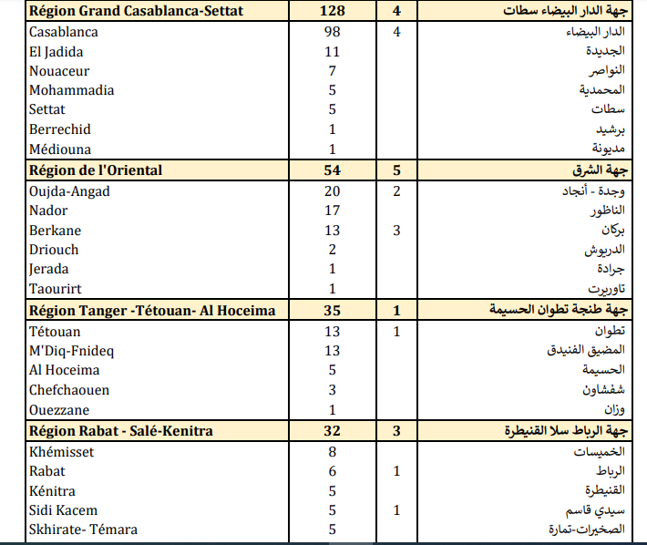 أما الوفيات فتتوزع على جهات الشرق (5)، والدار البيضاء-سطات (4)، والرباط-سلا-القنيطرة (3)، وسوس-ماسة (2)، بينما تم تسجيل حالة وفاة واحدة بكل من جهات طنجة-تطوان-الحسيمة، وفاس-مكناس، والداخلة وادي الذهب.