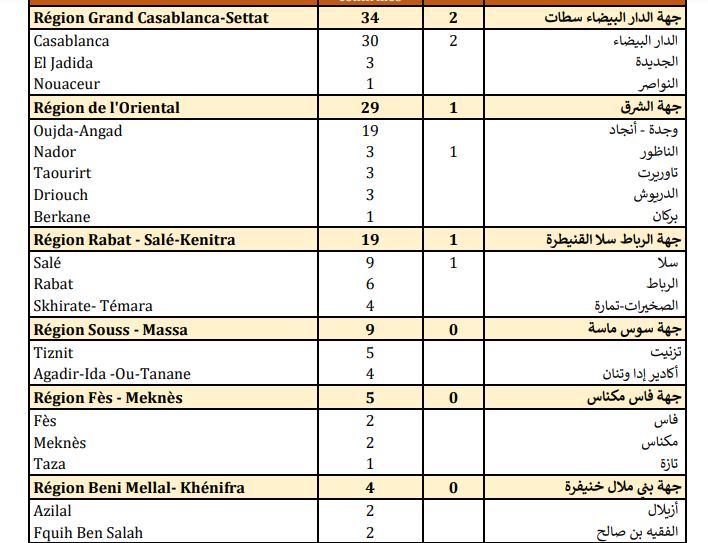 وتتوزع حالات الإصابة المسجلة خلال الـ24 ساعة الأخيرة عبر جهات المملكة بين الدار البيضاء-سطات (34)، والشرق (29)، والرباط سلا القنيطرة (19)، وسوس ماسة (9)، وفاس مكناس (5)، وبني ملال خنيفرة (4)، ومراكش آسفي (3)، وطنجة تطوان الحسيمة (2)، والداخلة وادي الذهب (2)، ودرعة تافيلالت (1).