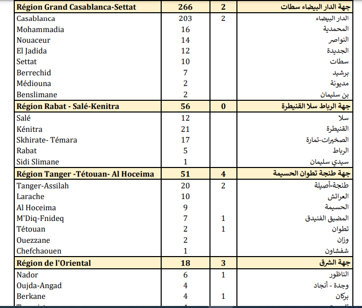 وتتوزع حالات الإصابة المسجلة خلال الـ24 ساعة الأخيرة عبر جهات المملكة بين الدار البيضاء-سطات (266)، والرباط- سلا-القنيطرة (56)، وطنجة-تطوان-الحسيمة (51)، والشرق (18)، ومراكش-اسفي (18)، وسوس ماسة (8)، ودرعة-تافيلالت (7)، والداخلة-وادي الذهب (7)، وبني ملال-اخنبفرة (4)، وفاس-مكناس (4)، وكلمبم-واد نون (3).