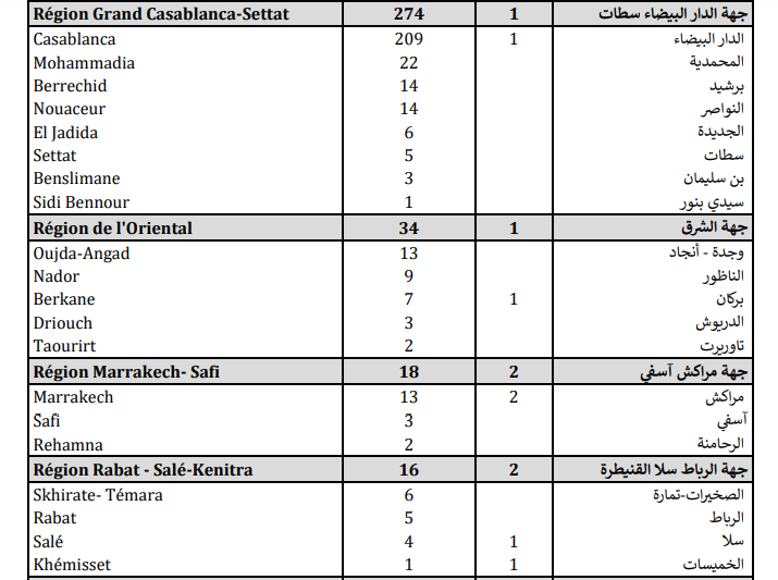 وتتوزع حالات الإصابة المسجلة خلال الـ24 ساعة الأخيرة عبر جهات المملكة بين الدار البيضاء-سطات (274)، والشرق (34)، ومراكش-آسفي (18)، والرباط سلا القنيطرة (16)، وطنجة تطوان الحسيمة (15)، وبني ملال-خنيفرة (14)، ودرعة-تافيلالت (6)، والداخلة وادي الذهب (6)، وسوس- ماسة (4)، والعيون-الساقية الحمراء (3)، وفاس-مكناس (2)، وكلميم-واد نون (1).
