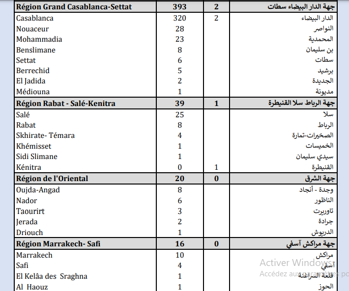 وتتوزع حالات الإصابة المسجلة خلال الـ24 ساعة الأخيرة عبر جهات المملكة بين الدار البيضاء-سطات (393)، والرباط-سلا-القنيطرة (39)، والشرق (20)، ومراكش-اسفي (16)، وسوس-ماسة (13)، ودرعة-تافيلالت (8)، والداخلة-وادي الذهب (7)، وطنجة-تطوان-الحسيمة (6)، والعيون-الساقية الحمراء (5)، وبني ملال-اخنيفرة (4)، وفاس-مكناس (3).