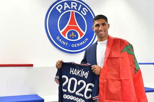 وقع الدولي المغربي، أشرف حكيمي، عقدا مع فريق باريس سان جرمان إلى غاية العام 2026، وذلك حسب ما أعلنه النادي الباريسي، اليوم الثلاثاء، على مواقع التواصل الاجتماعي.