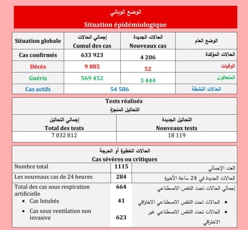 تصاعد مهول في الاصابات بـ”كوفيد-19″: 52 حالة وفاة و 4206 إصابة جديدة و 3444 حالة شفاء خلال الـ24 ساعة الماضية