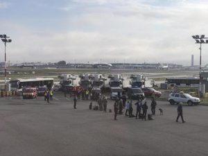 وقد قام رجال الإطفاء والشرطة بتفتيش الطائرة على مدرج الإقلاع بعد ورود الإنذار.