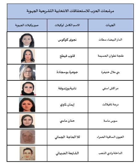 افرج الامين العام لحزب الاصالة والمعاصرة، عبد اللطيف وهبي، على لائحة مرشحات الحزب برسم الدوائر الجهوية لانتخابات مجلس النواب.