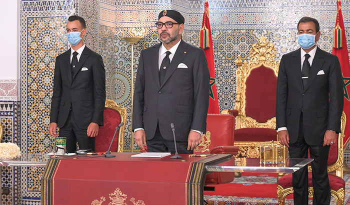 وسيبث الخطاب الملكي على أمواج الإذاعة وشاشة التلفزة ابتداء من الساعة التاسعة من مساء يومه الجمعة 11 محرم 1443 ه موافق 20 غشت 2021 “.