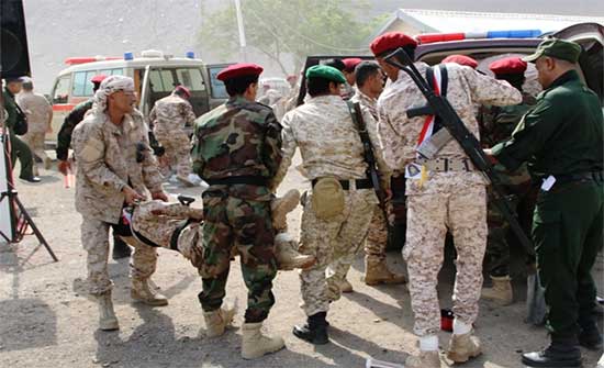 وأضاف أن ثلاثة صواريخ سقطت وسط قاعدة العند الجوية بمحافظة لحج، جنوبي اليمن، خلال تجمع للجنود صباح اليوم، مما أسفر عن سقوط عشرات الضحايا ما بين قتلى وجرحى.