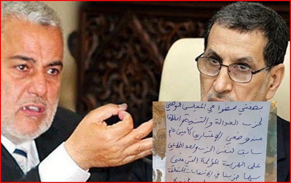 بعد النتائج الأولية الانتخابات التشريعية التي جرت أمس الأربعاء 8 شتنبر٬ والتي  اسفرت عن “تكرديعة” مدوية و”انشطار ” زجاج “لامبة” العدالة والتنمية، خرج كبيرهم الذي علمهم (…) بـ”نفولة” كتبها بخط يده ونشرها على صفحته “الفايسبوكية” في الصباح الباكر من يومه الخميس، يطالب من خلالها “غريمه” العثماني، بتسليم مفاتيح الحزب الى نائبه سليمان العمراني في انتظار انعقاد المؤتمر الوطني الاستثنائي.