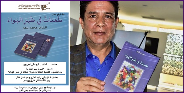 في إطار برنامجها الثقافي والفني للموسم الجديد 2021/2022، تنظم فرقة مسرح سيدي يحيى الغرب حفل توقيع ديوان الشاعر محمد بلمو: “طعنات في ظهر الهواء”، الصادر عن منشورات جمعية الفكر التشكيلي، في نهاية سنة 2019.