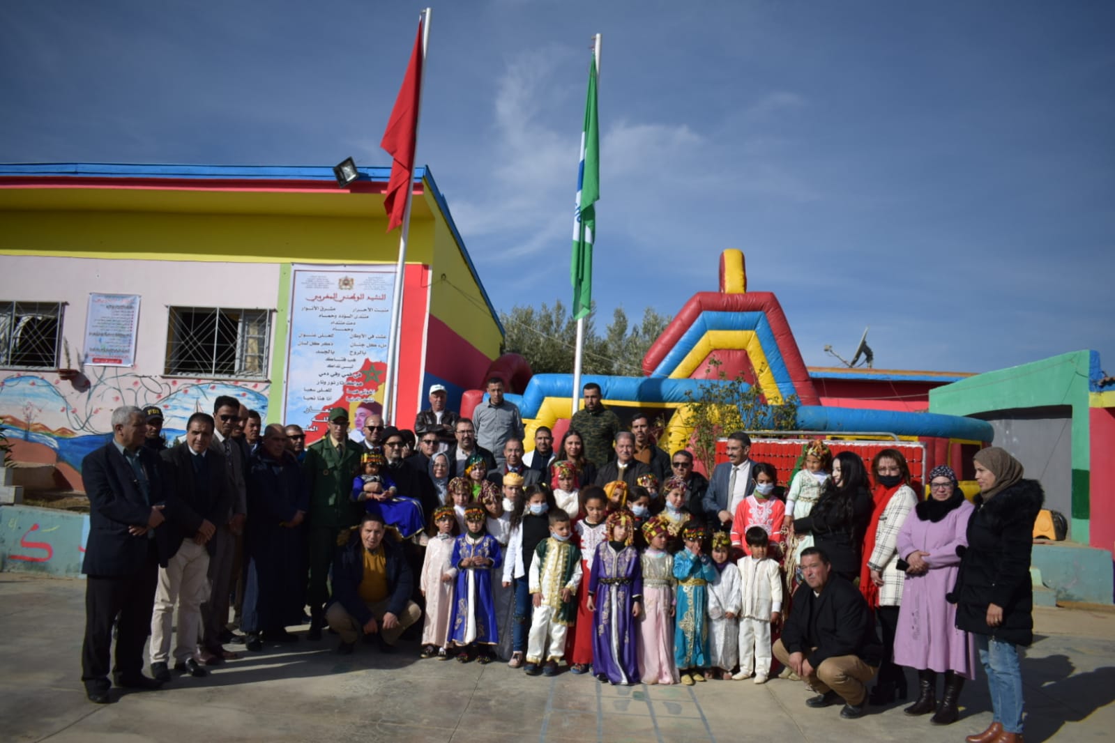 عبد الصمد صريح: أشرف، يوم الثلاثاء 21 دجنبر الجاري ، مصطفى السليفاني مدير الأكاديمية الجهوية للتربية والتكوين لجهة بني ملال-خنيفرة ، و مريم الخضري ممثلة مؤسسة محمد السادس لحماية البيئة، وعبد العزيز العنكوري ممثل عن وزارة التربية الوطنية والتعليم الأولي والرياضة، والوفد الرسمي، على مراسيم رفع اللواء الأخضر الدولي بالمدرسة الجماعاتية آيت عثمان بمريرت المتوجة في إطار برنامج “المدارس الإيكولوجية”، وحضر هذا الحفل، المدير الإقليمي بخنيفرة والطاقم الإداري والتربوي والتلميذات والتلاميذ أعضاء الأندية البيئية بالمؤسسة المتوجة في إطار برنامج “المدارس الإيكولوجية” ،وقُدمت لمدير الأكاديمية والوفد المرافق له شروحات من قبل التلميذات والتلاميذ أعضاء الأندية البيئية حول المحاور التي اشتغلت عليها الأندية، والمتمثلة في التقليص من استهلاك الماء والطاقة، والتدبير الجيد للنفايات.