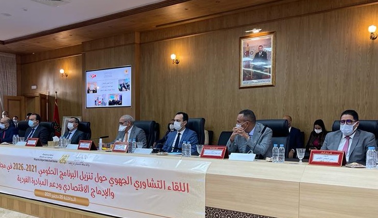 ويندرج هذا اللقاء، الذي حضره والي جهة الداخلة – وادي الذهب عامل إقليم وادي الذهب لمين بنعمر ورؤساء المجالس المنتخبة وعدد من ممثلي المصالح الخارجية وجمعيات المجتمع المدني، في إطار مواصلة اللقاءات التشاورية حول تنزيل البرنامج الحكومي 2021 – 2026 في مجال التشغيل والإدماج الاقتصادي ودعم المبادرة الفردية.