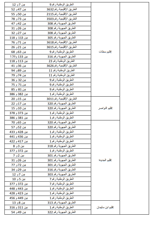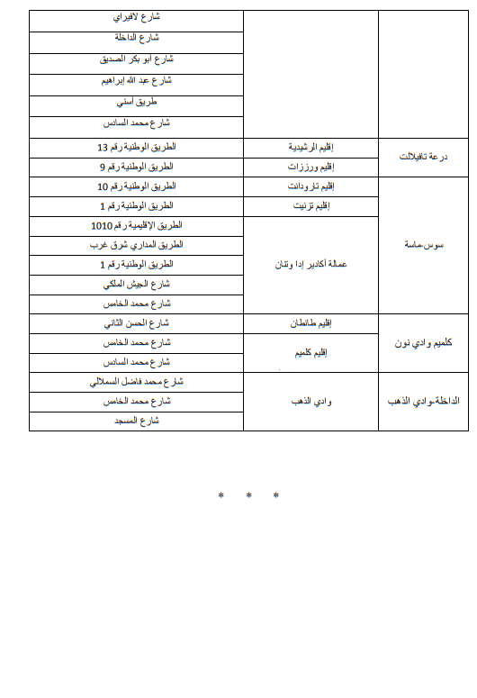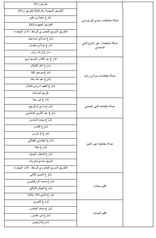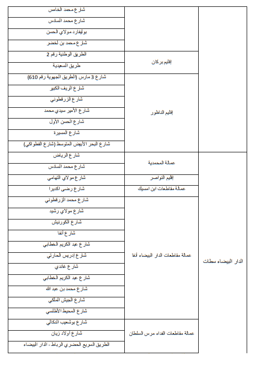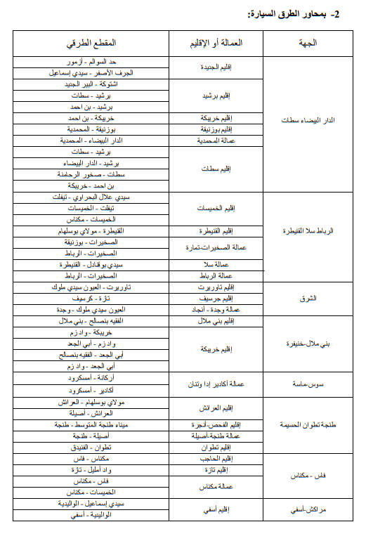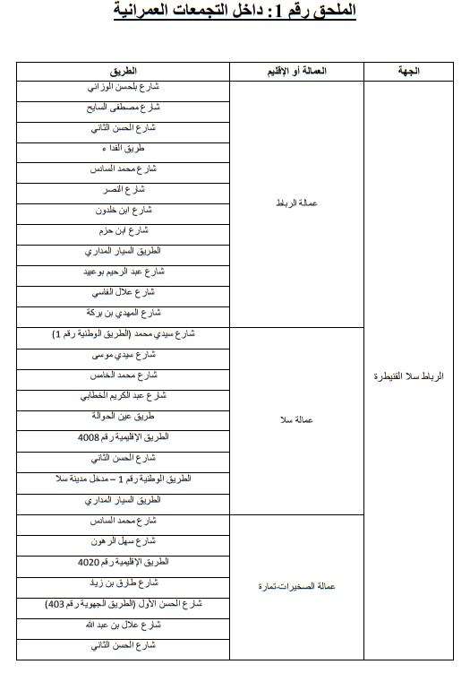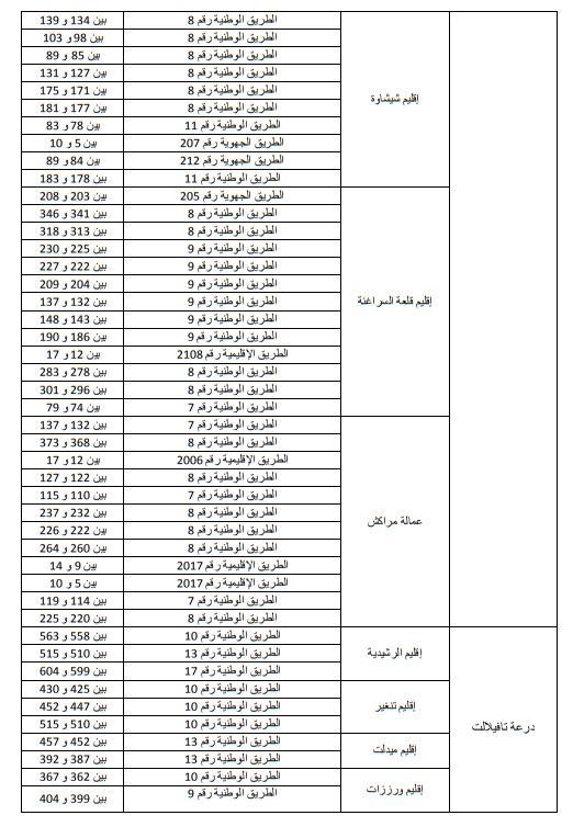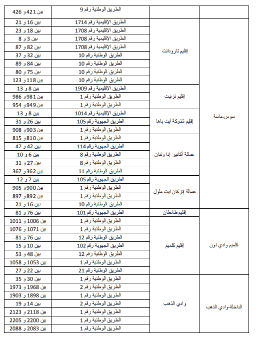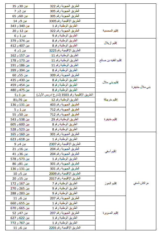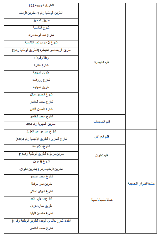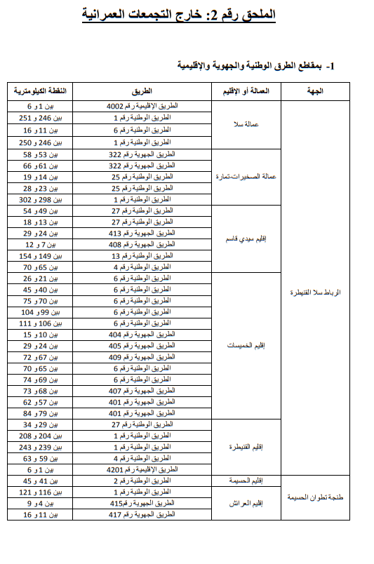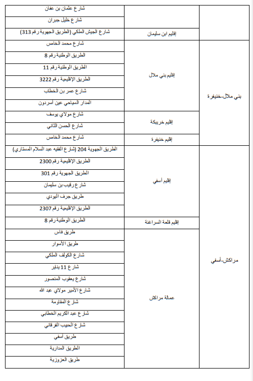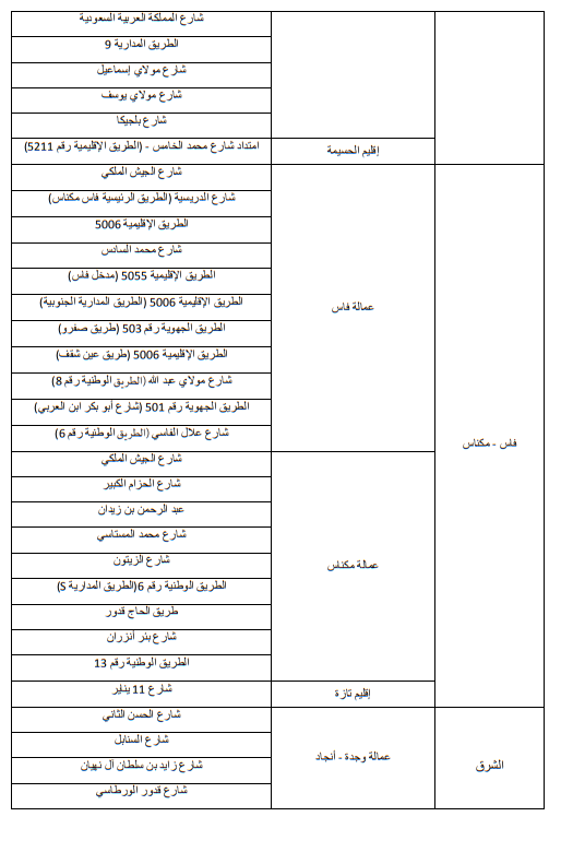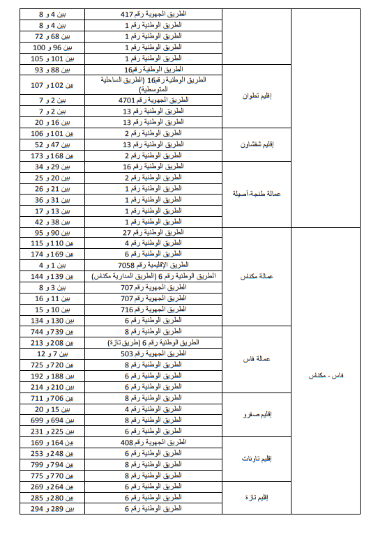 وللاطلاع على الجداول الاول والثاني والثالث التي تبين الاماكن على مستوى التراب الوطني: