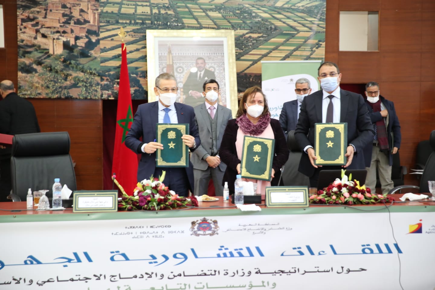 عبد الصمد صريح :  قالت وزيرة التضامن والإدماج الاجتماعي والأسرة، السيدة عواطف حيار، اليوم الجمعة ببني ملال، إن استراتجية القطب الاجتماعي 2021-2026، التي أطلقت الوزارة بخصوصها لقاءات تشاورية جهوية، تروم تعزيز مسلسل التنمية الدامجة والمستدامة، وتحقيق المساواة والعدالة المجالية،أوضحت حيار، في عرض قدمته خلال المحطة الثامنة للقاءات التشاورية الجهوية لإعداد استراتيجية القطب الاجتماعي 2021-2026 بجهة بني ملال خنيفرة ، أن الوزراة حرصت على تقوية وترصيد المقاربة التشاركية مع كل الفاعلين وإضفاء الطابع الجهوي على الاستراتيجة التي تضع اللمسات الأخيرة عليها.