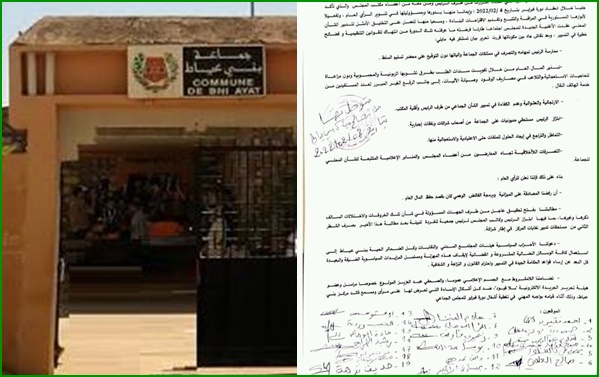 عبد الصمد صريح: استنكرت الأغلبية الجديدة بالمجلس الجماعي لبني عياط بإقليم أزيلال ، في بيان استنكاري يحمل توقيع 19 من أصل 28 مجموع أعضاء المجلس ممارسات رئيس المجلس الحالي من قبيل الانفراد باتخاذ القرارات وسوء التدبير ، وأكد نص البلاغ أنه على اثر ما يعرفه تسيير الشأن المحلي بجماعة بني عياط من سوء تدبير، واختلالات قانونية ، وفساد مالي واداري، وسلوكيات لا أخلاقية، وانفراد في اتخاذ القرارات من طرف الرئيس ومن معه من أعضاء مكتب المجلس والذي تأكد جليا خلال انعقاد دورة فبراير بتاريخ 4 /02/2022 ؛ وإيمانا منها بدورها وبمسؤوليتها في تنوير الرأي العام ، وتفعيلا لأدوارها الدستورية في المراقبة والتتبع وتقديم الاقتراحات البناءة ، وسعيا منها للعمل على التخليق الأمثل لتدبير الشأن المحلي عقدت الأغلبية الجديدة للمجلس اجتماعا طارئا فرضته ما عرفته تلك الدورة من انتهاك للقوانين التنظيمية و فضائح خطيرة في التسيير .