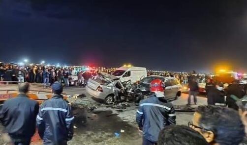 وأفاد مصدر طبي، في تصريح للصحافة، بأن الحادثة وقعت حوالى الساعة 23:00 مساء في محيط المدينة، جراء اصطدام بين سيارة من النوع الخفيف ومركبة رباعية الدفع بسبب السرعة المفرطة، مشيرا إلى أن الضحايا الثمانية، وجميعهم من ركاب السيارة بينهم نساء وقاصرون، لقوا مصرعهم على الفور.