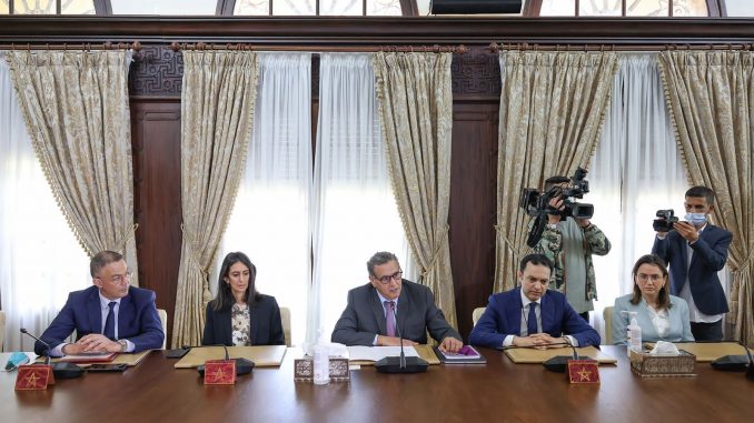 وذكر بلاغ لرئاسة الحكومة أن هذا الاجتماع، الذي عقده رئيس الحكومة مع كل من نادية فتاح، وزيرة الاقتصاد والمالية، ومحمد صديقي، وزير الفلاحة والصيد البحري والتنمية القروية والمياه والغابات، ويونس سكوري، وزير الإدماج الاقتصادي والمقاولة الصغرى والشغل والكفاءات، وعبد اللطيف ميراوي، وزير التعليم العالي والبحث العلمي والابتكار، وفوزي لقجع، الوزير المنتدب المكلف بالميزانية، وغيثة مزور، الوزيرة المنتدبة المكلفة بالانتقال الرقمي وإصلاح الإدارة، يأتي في أعقاب التوقيع على محضر اتفاق الحوار الاجتماعي وعلى الميثاق الوطني للحوار الاجتماعي في 30 أبريل الماضي، بهدف الوقوف على المخرجات المتفق عليها والمشتركة بين مختلف الوزارات والمصالح المعنية بتنفيذ الالتزامات الحكومية في هذا الإطار.