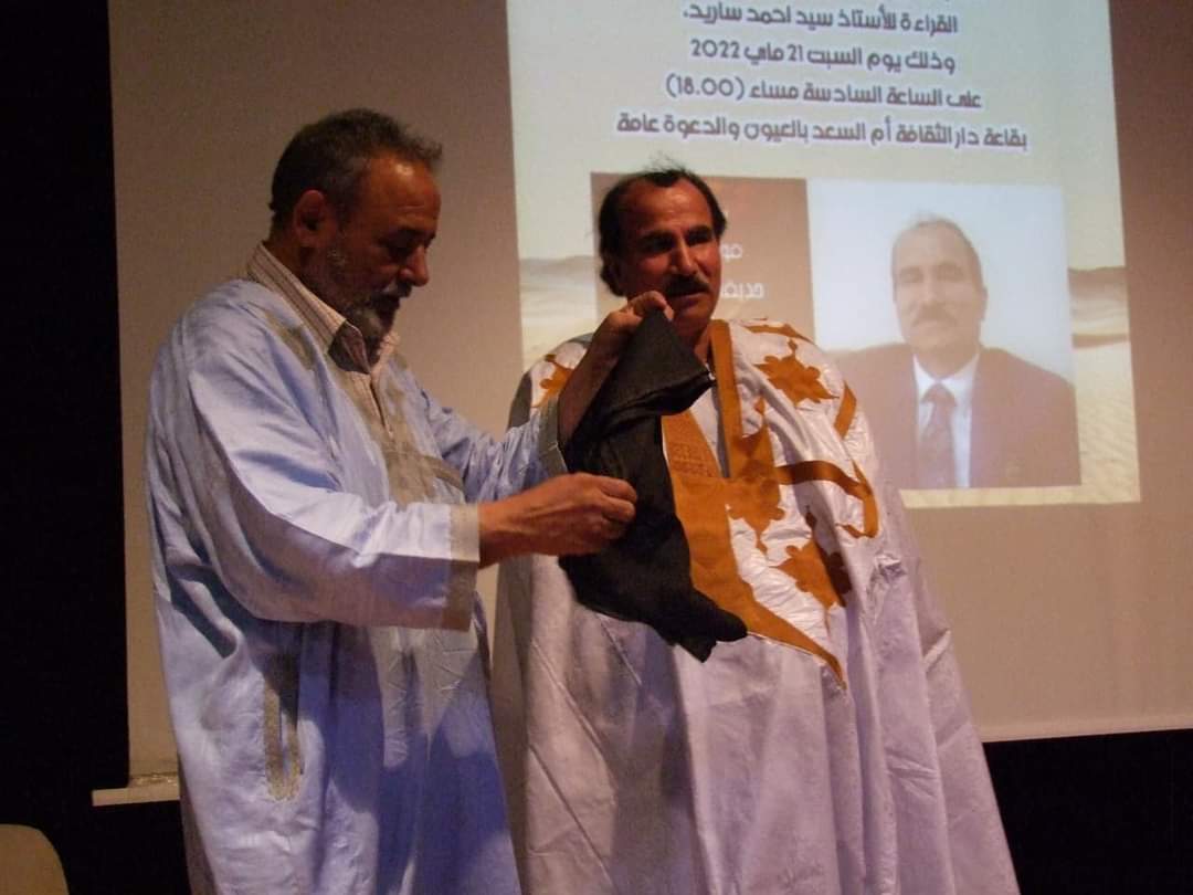 وقد عرف الحفل حضورا نوعيا وكميا تميز بتكريم الاديب المحتفى به وتوقيع العديد من النسخ وتسليمها للحضور الكريم ؛كما عرفت قراءة سيد احمد تجاوبا كبيرا، حيث وقف في تحليله للرواية من الناحية الشكلية انطلاقا من العنوان وتفصيله لغويا وتركيبيا. كما وقف عند مضامين الروية في شقها المتعلق بمعاناة اخواننا المحتجزين بمخيمات. الذل والعار من طرف عصابة الجيش الجزائري الذي فرض طوقا وحصارا على الصحراويين المحتجزين ومعاناة الاطفال والنساء في قالب ادبي مشوق يستلهم القاريء لقراءة فصول الرواية.