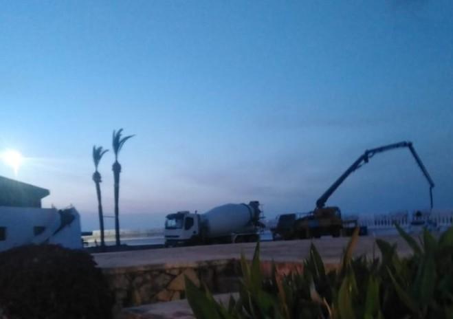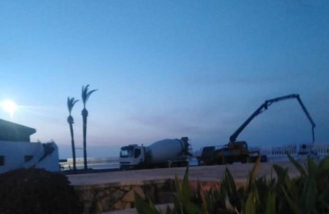 “في الظلام الدامس” من يوم الاحد: شاحنات عملاقة تضخ الاسمنت على رمال شاطيء مارينا اسمير