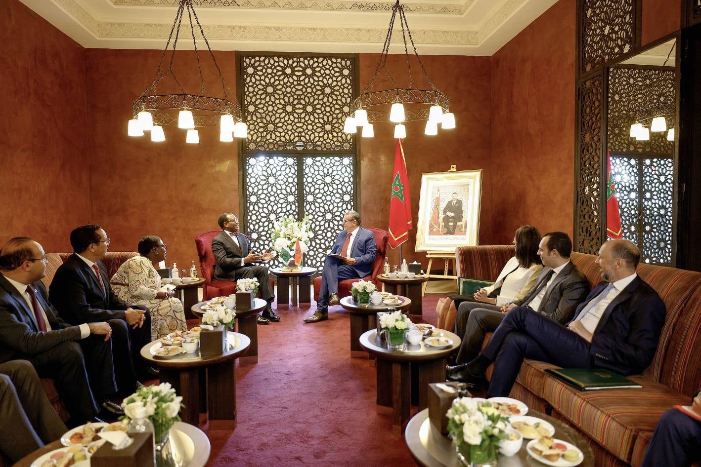 أجرى رئيس الحكومة، السيد عزيز أخنوش، اليوم الأربعاء، بمراكش، مباحثات مع رئيس مجموعة البنك الإفريقي للتنمية، السيد أكينوومي أديسينا، الذي يقوم بزيارة عمل إلى المغرب، مرفوقا بوفد هام. وتميز هذا اللقاء بحضور كل من وزيرة الاقتصاد والمالية السيدة نادية فتاح العلوي، ووزير الإدماج الاقتصادي والمقاولة الصغرى والشغل والكفاءات، السيد يونس سكوري، والوزير المنتدب لدى رئيس الحكومة المكلف بالاستثمار والالتقائية وتقييم السياسات العمومية، السيد محسن جازولي. وتناولت المباحثات مختلف أوجه الشراكة بين المغرب والمؤسسة المالية الإفريقية، وسبل تقويتها وتطويرها، حيث أعرب رئيس الحكومة عن ارتياحه لمستوى التعاون القائم ولأهمية البرامج والمشاريع والاستراتيجيات الكبرى التي باشرها المغرب في إطار الشراكة مع البنك الافريقي للتنمية.