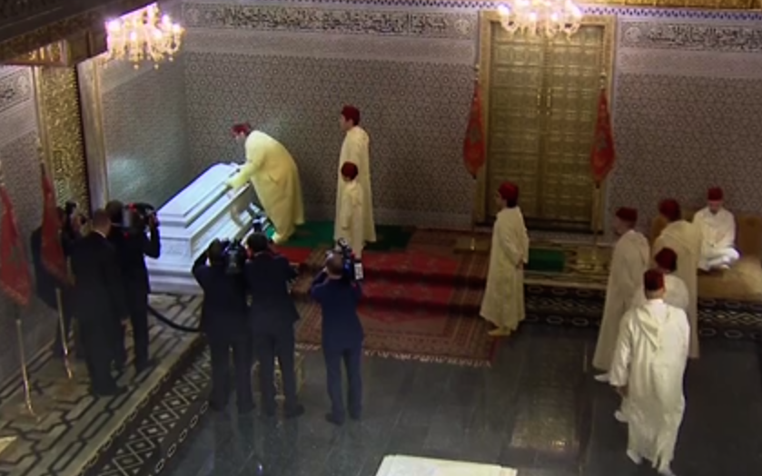 وبهذه المناسبة، قام جلالة الملك، حفظه الله، مرفوقا بصاحب السمو الملكي الأمير مولاي رشيد، وصاحب السمو الأمير مولاي أحمد وصاحب السمو الأمير مولاي اسماعيل بزيارة قبر جلالة المغفور له الملك الحسن الثاني، حيث ترحم جلالته على روحه الطاهرة.