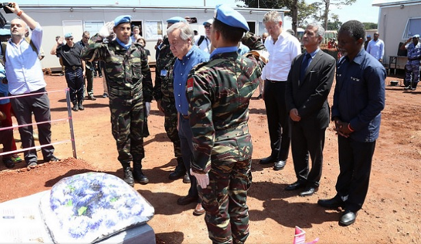 وعبر الامين العام عن افتخاره “بالتواجد معكم للإعراب لكم عن عرفاني وعرفان الامم المتحدة بالعمل الكبير والصبور الذي تقومون به، أولا من أجل شعب إفريقيا الوسطى، ولكن أيضا من اجل منظمتنا ومن أجل سمعتها”.